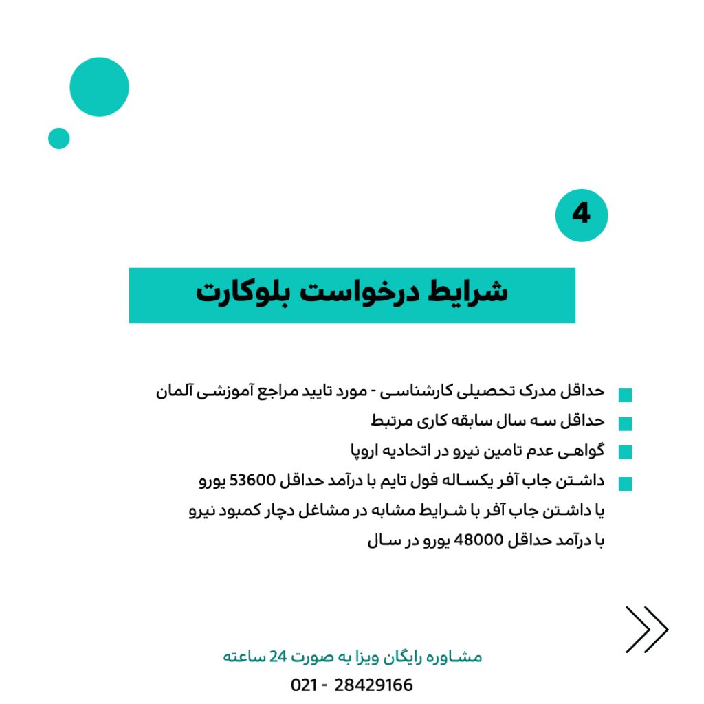 شرایط در خواست کارت آبی المان